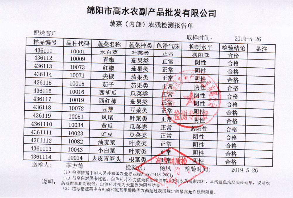高农司农残检测报告单