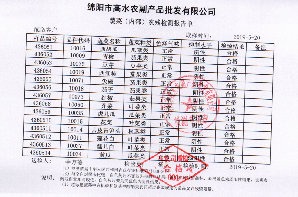 高农司农残检测报告单