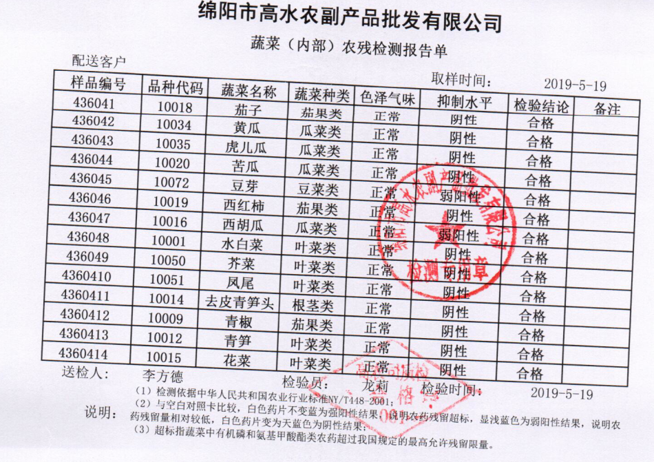 高农司农残检测报告单