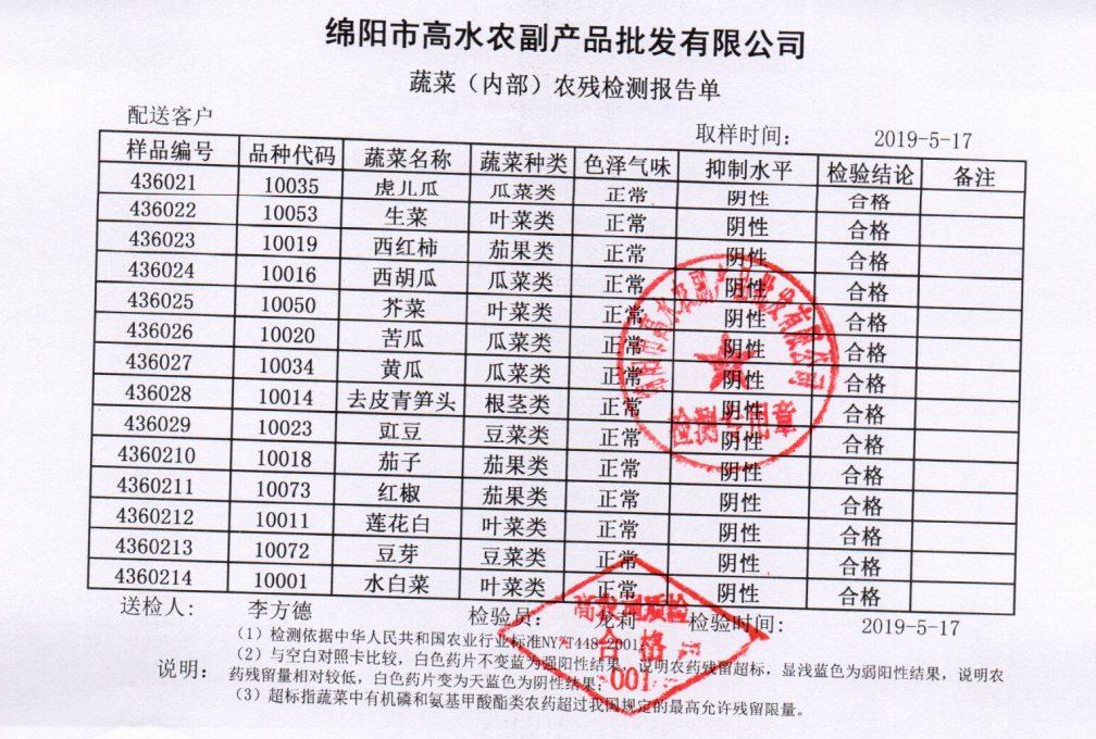 高农司农残检测报告单