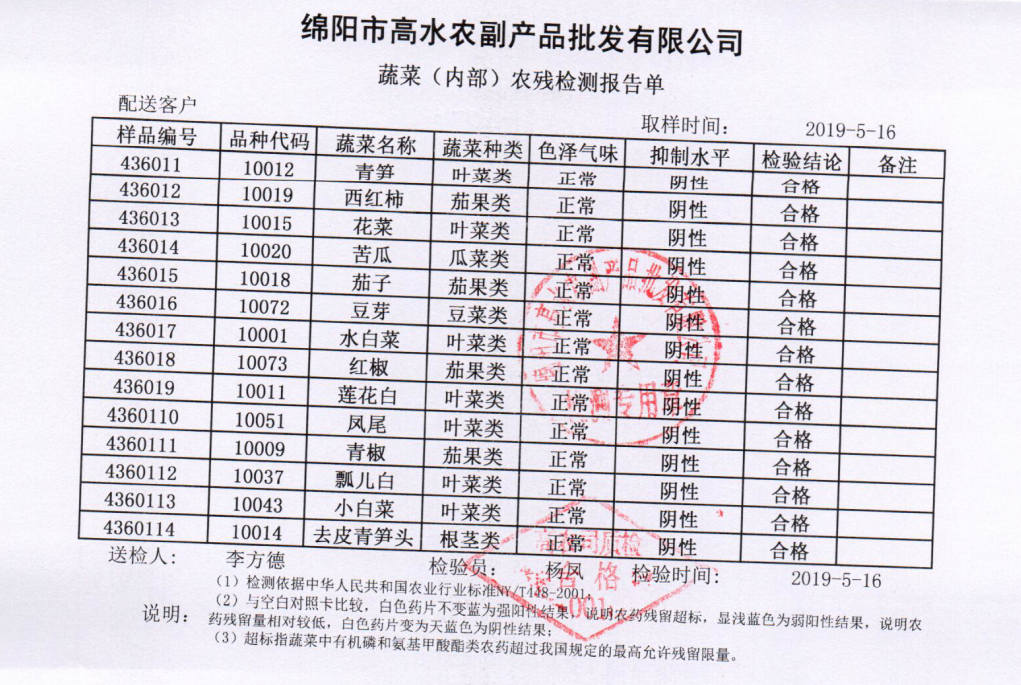 高农司农残检测报告单