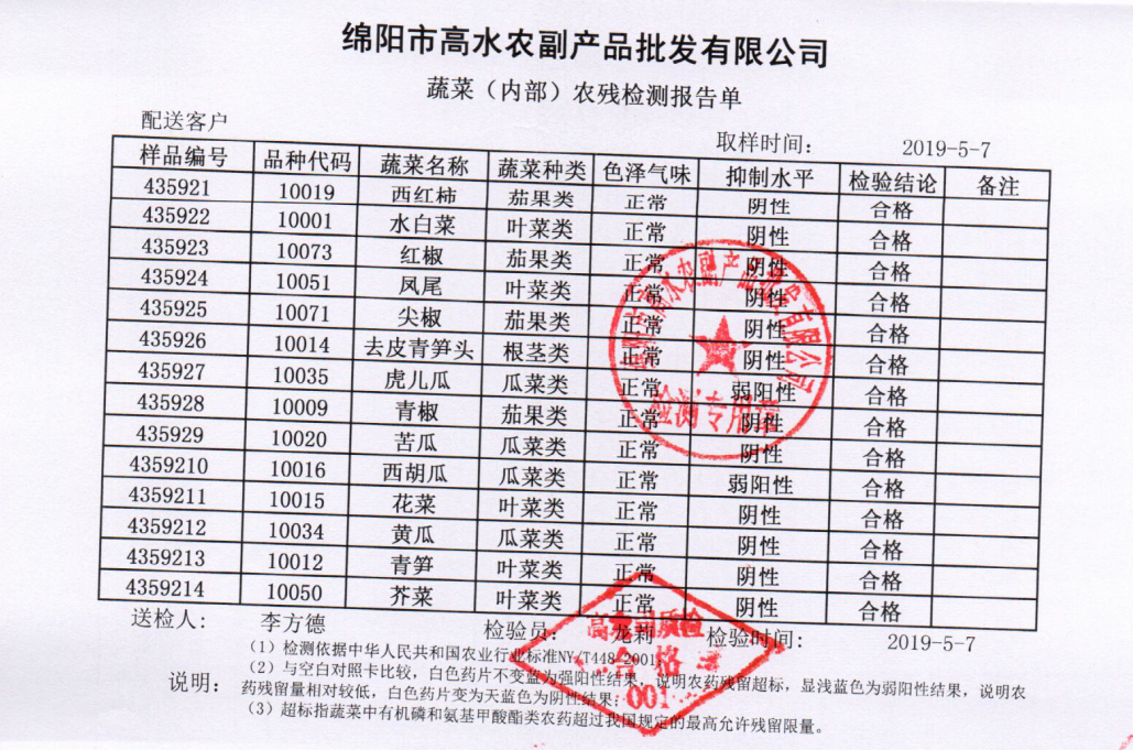 高农司农残检测报告单