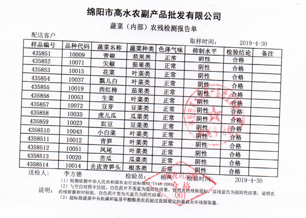 高农司农残检测报告单