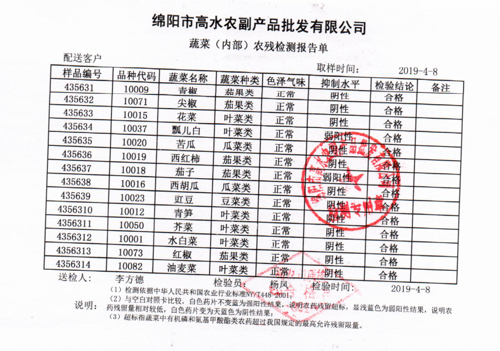 高农司农残检测报告单