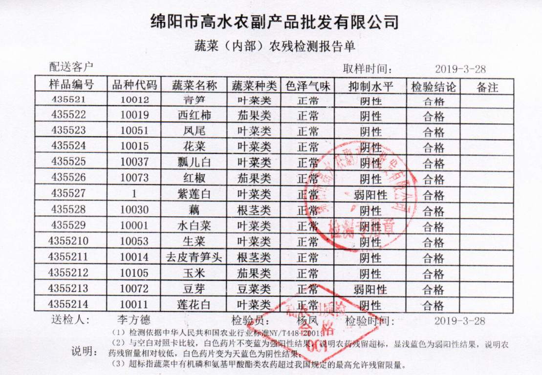 高农司农残检测报告单
