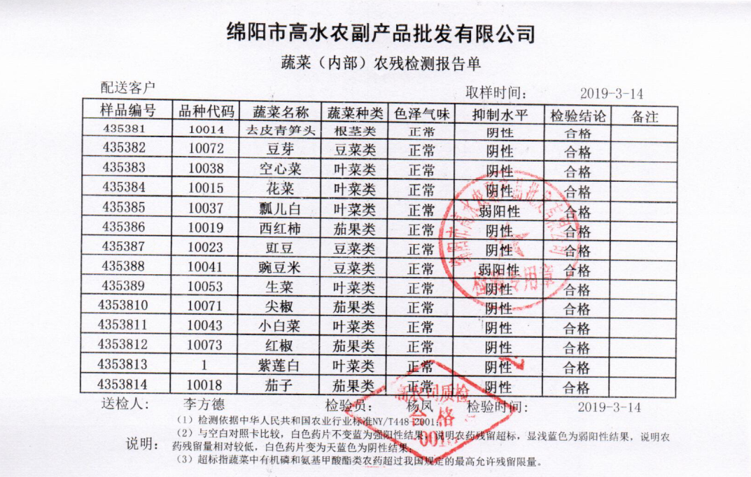 高农司农残检测报告单