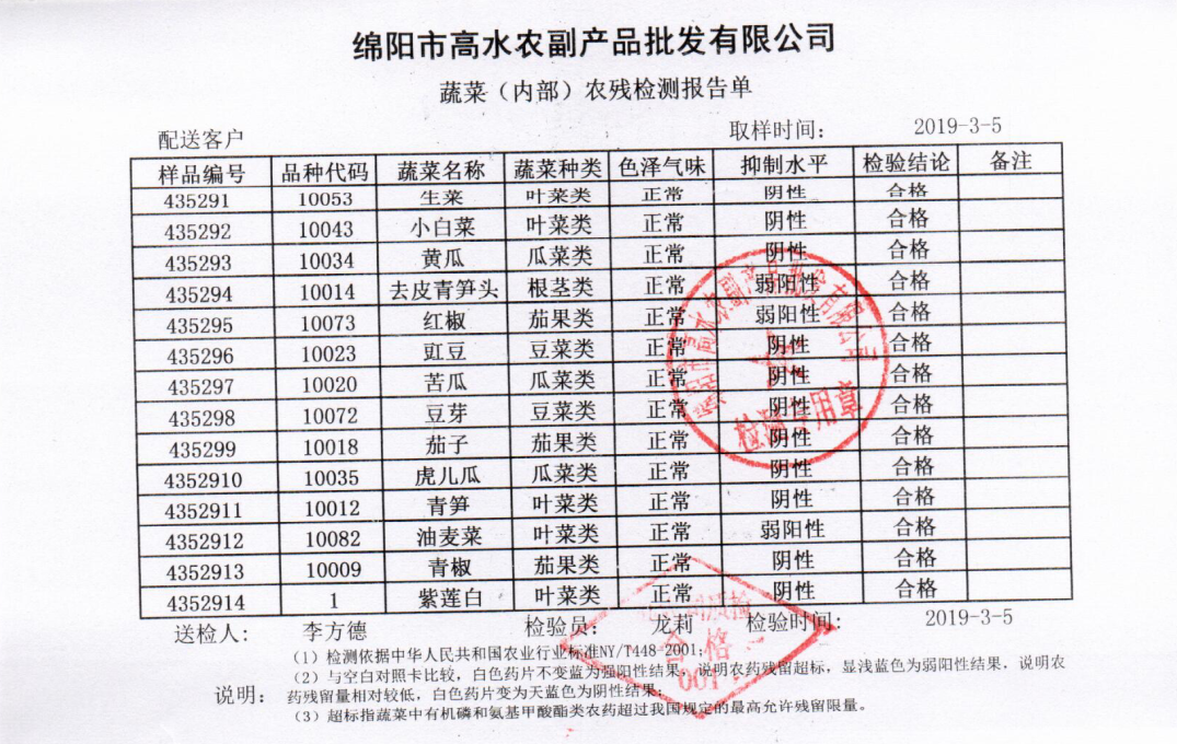 高农司农残检测报告单