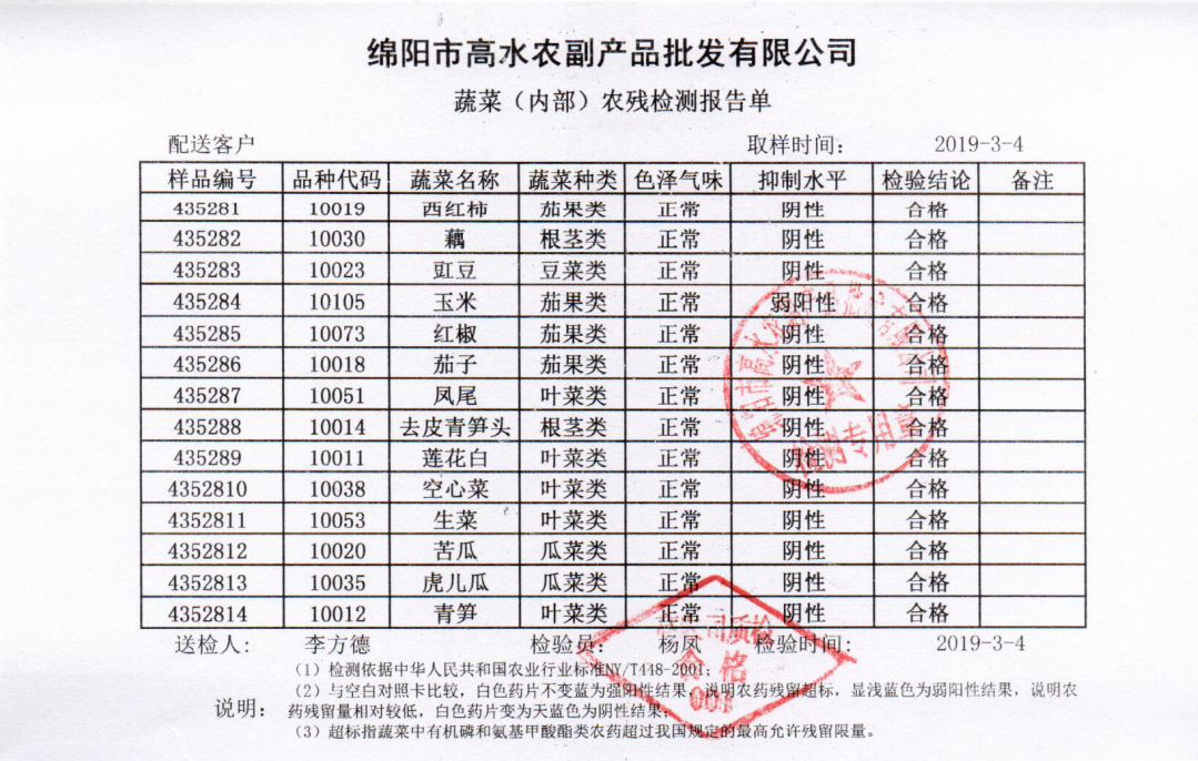 高农司农残检测报告单