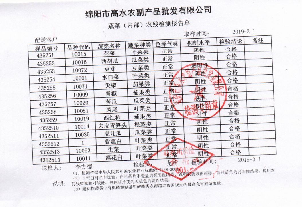 高农司农残检测报告单