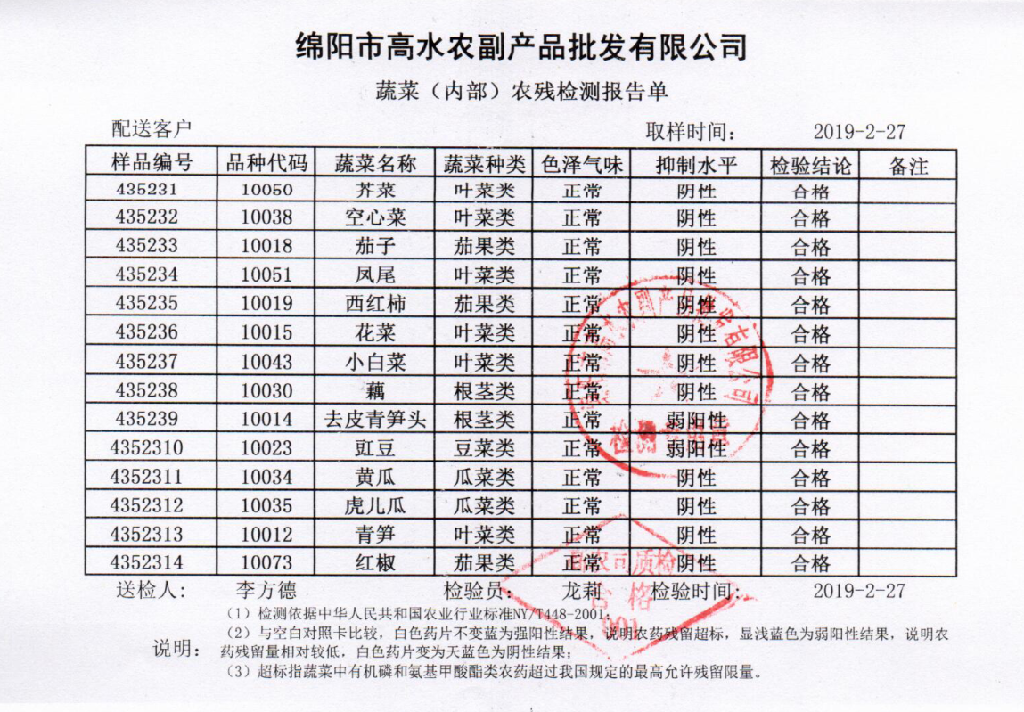 高农司农残检测报告单