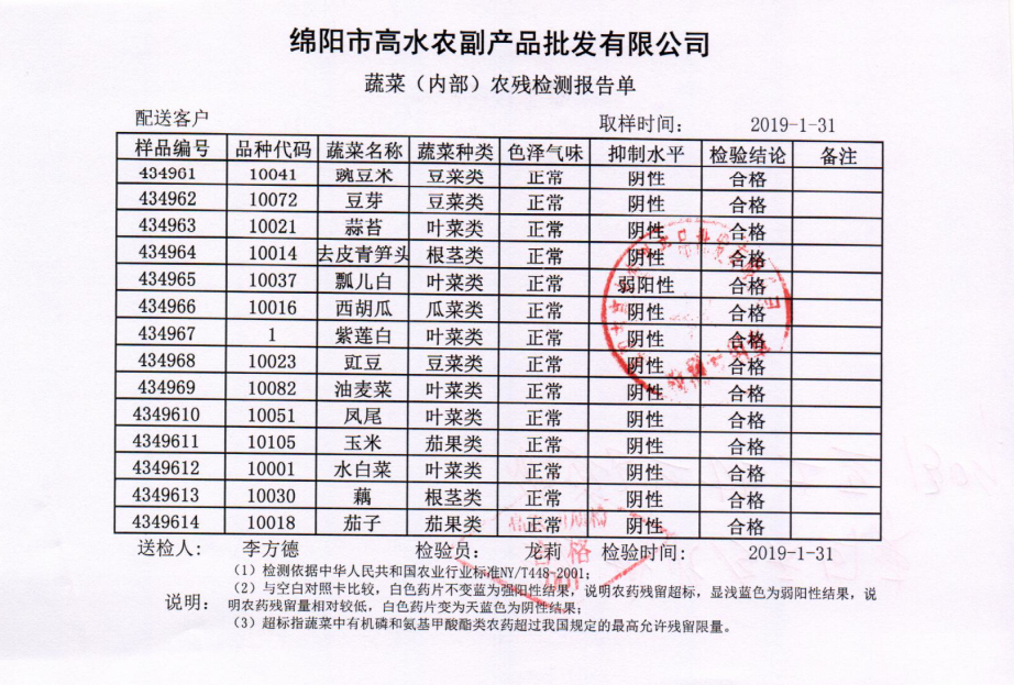 高农司农残检测报告单