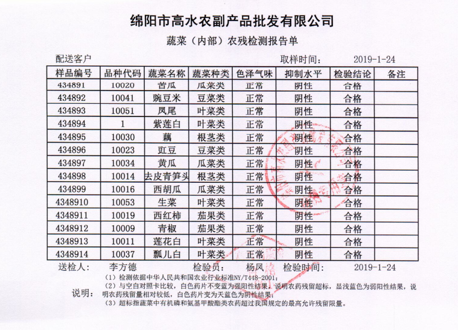 高农司农残检测报告单
