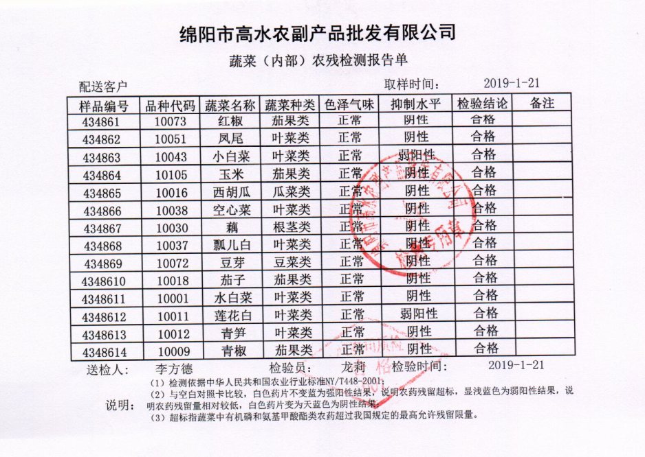 高农司农残检测报告单