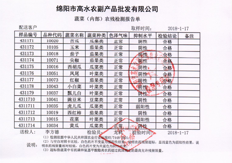 高农司农残检测报告单