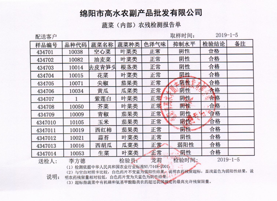 高农司农残检测报告单