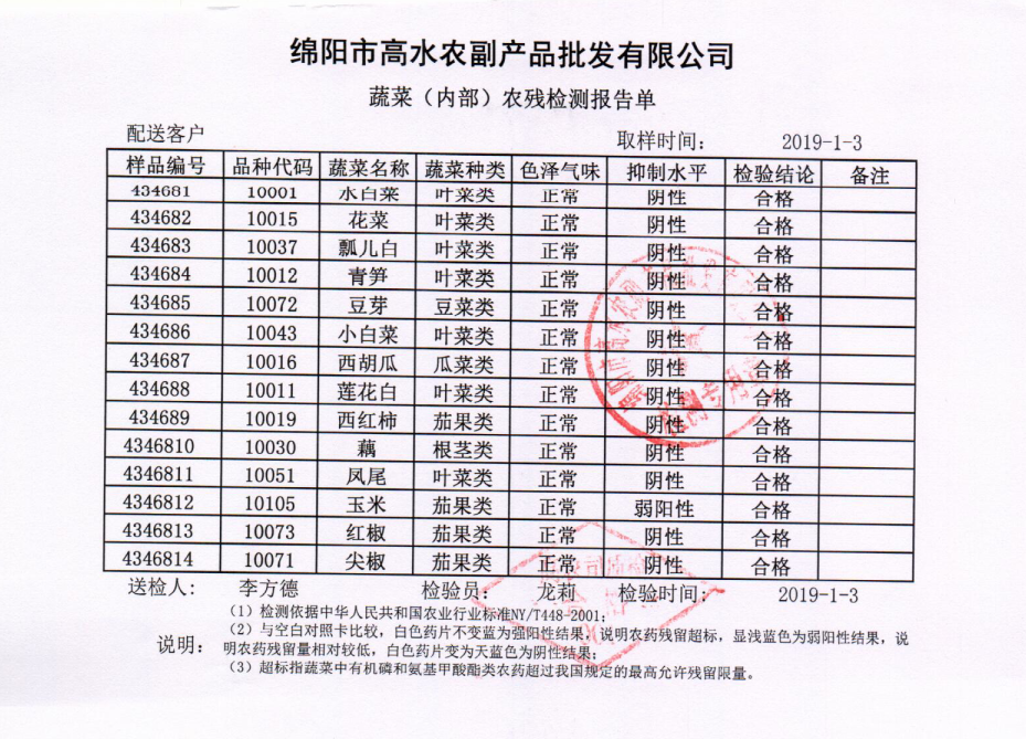 高农司农残检测报告单
