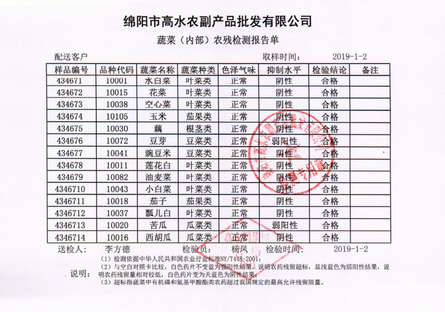 高农司农残检测报告单