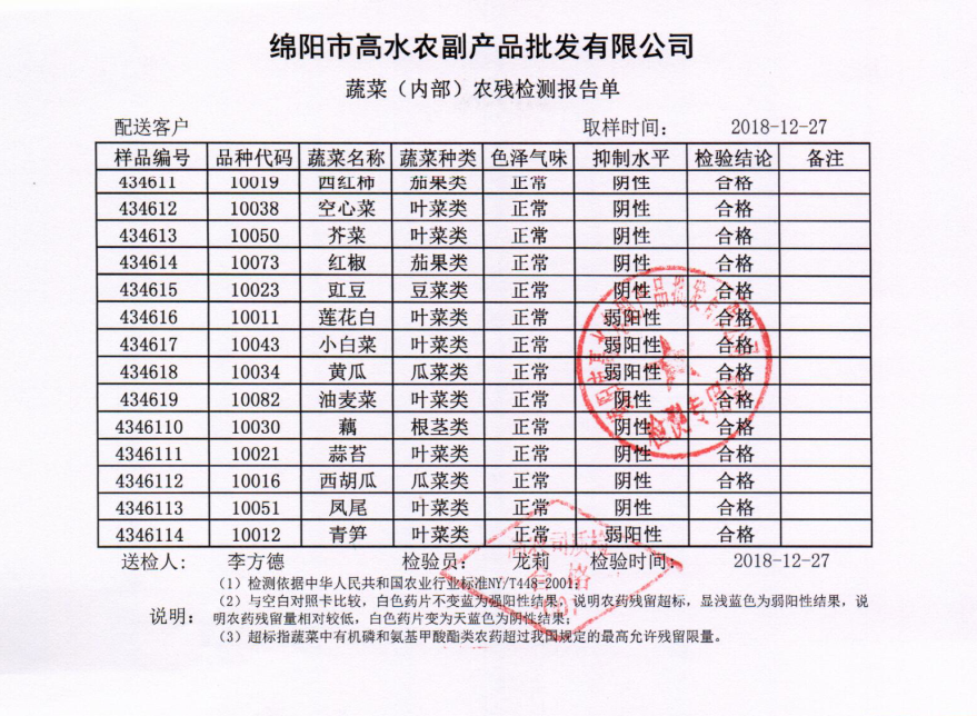 高农司农残检测报告单