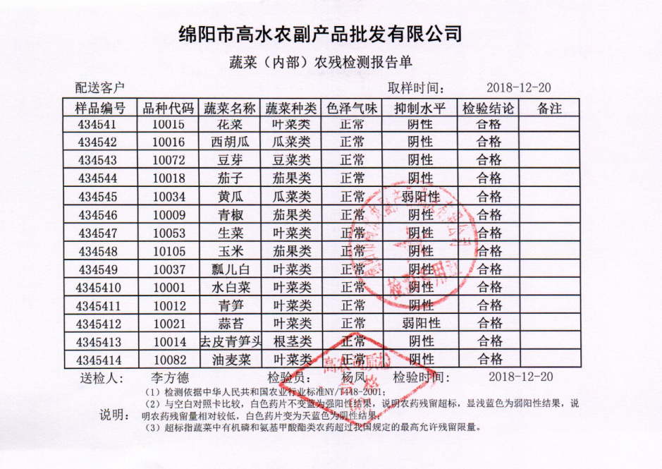 高农司农残检测报告单