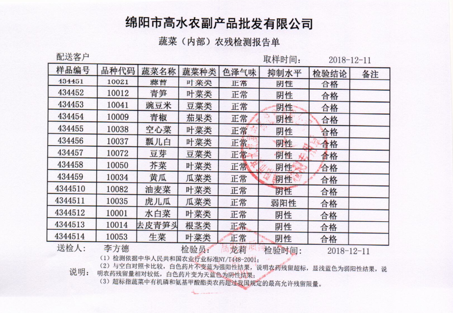 高农司农残检测报告单