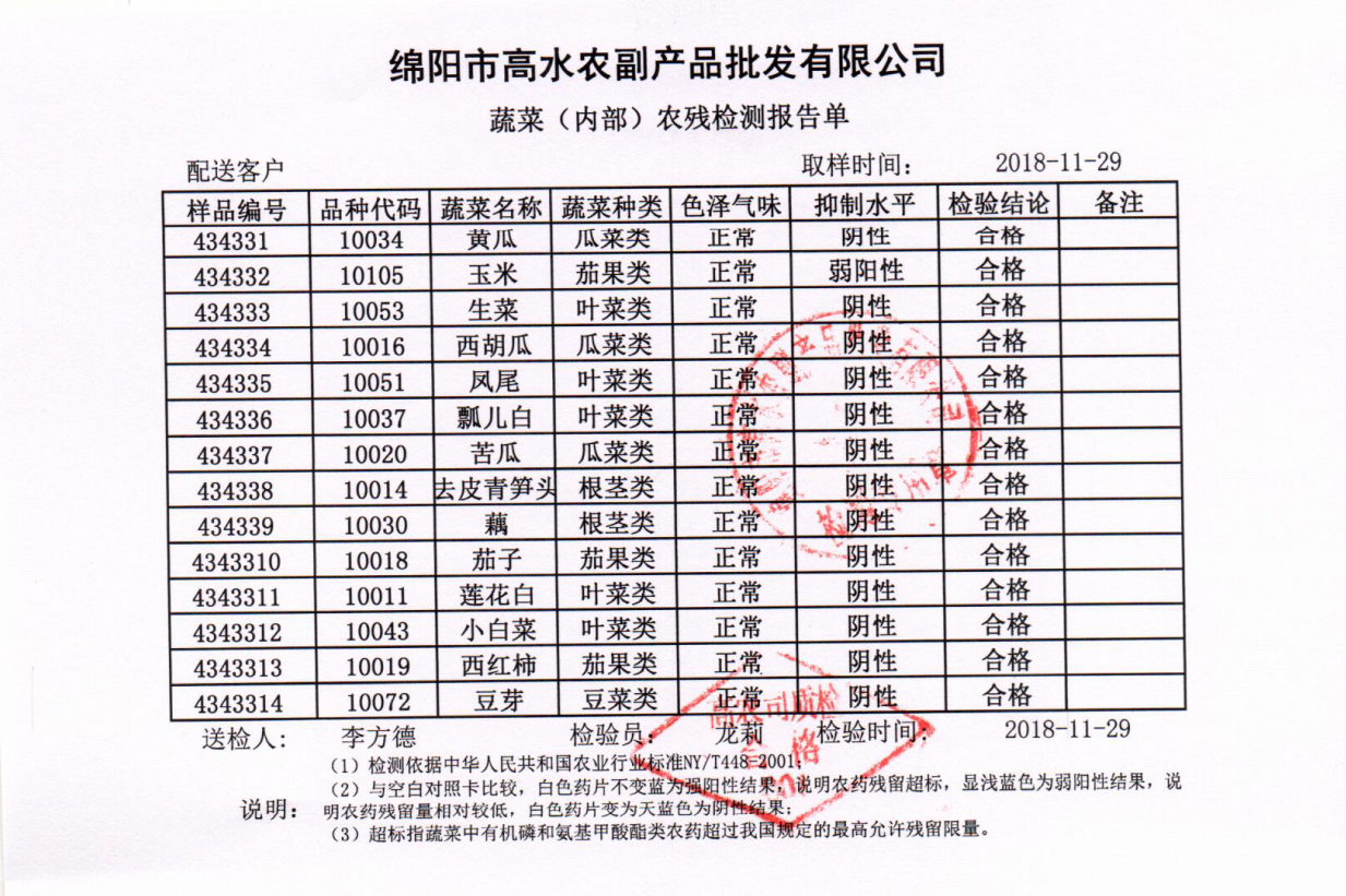 高农司农残检测报告单