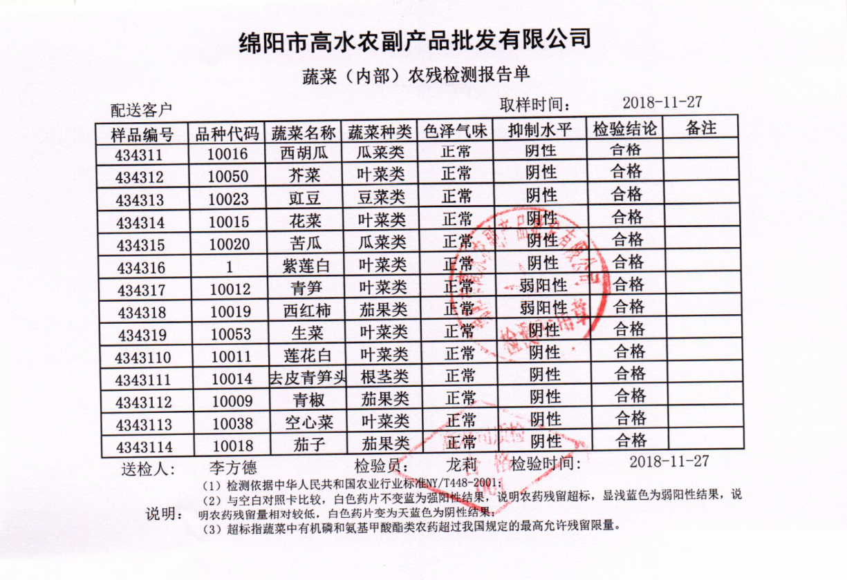 高农司农残检测报告单