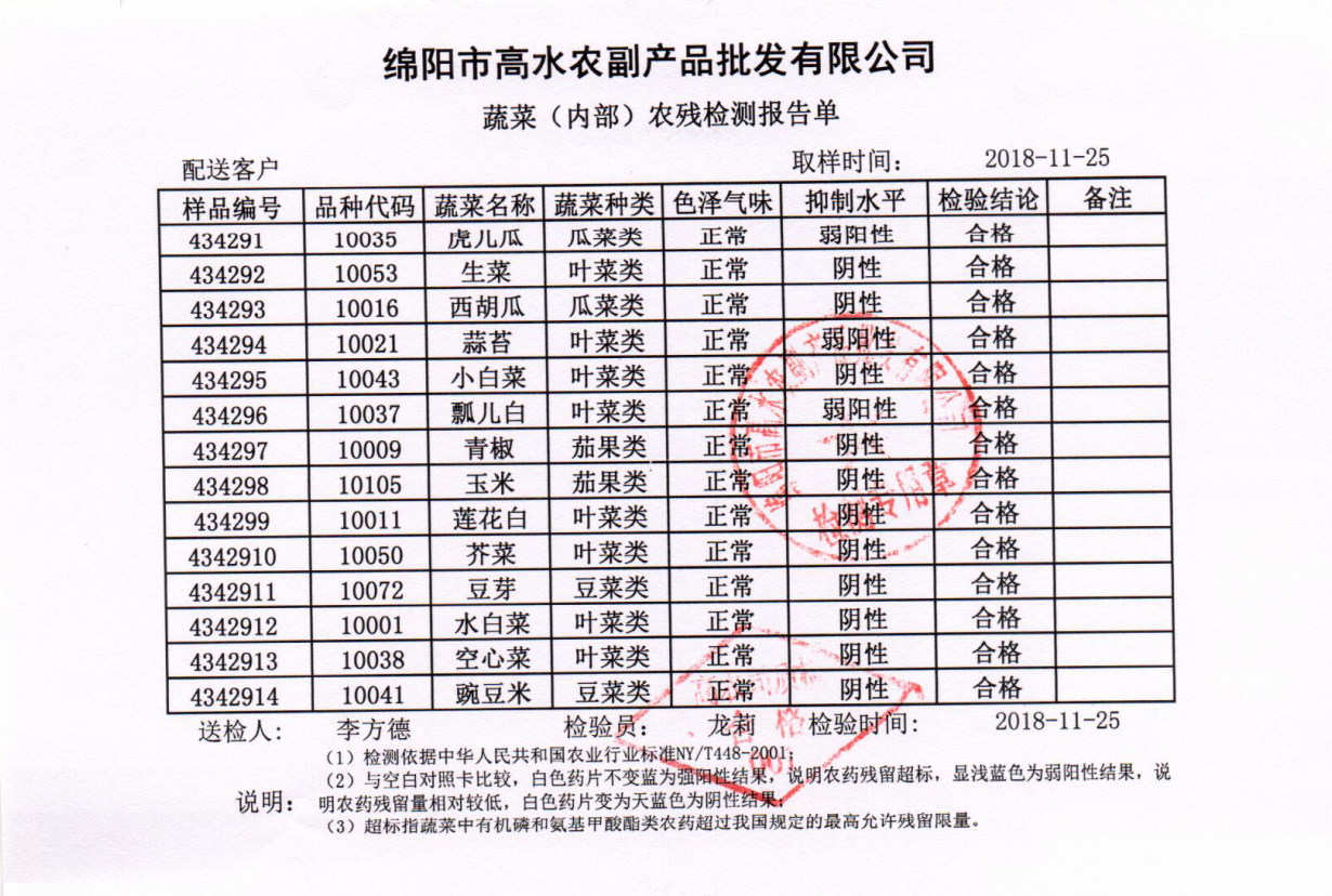 高农司农残检测报告单
