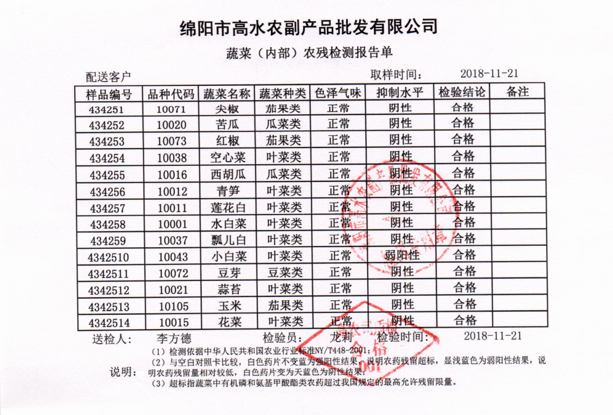 高农司农残检测报告单