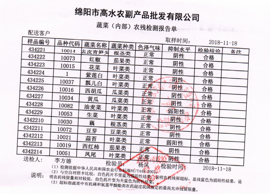 高农司农残检测报告单