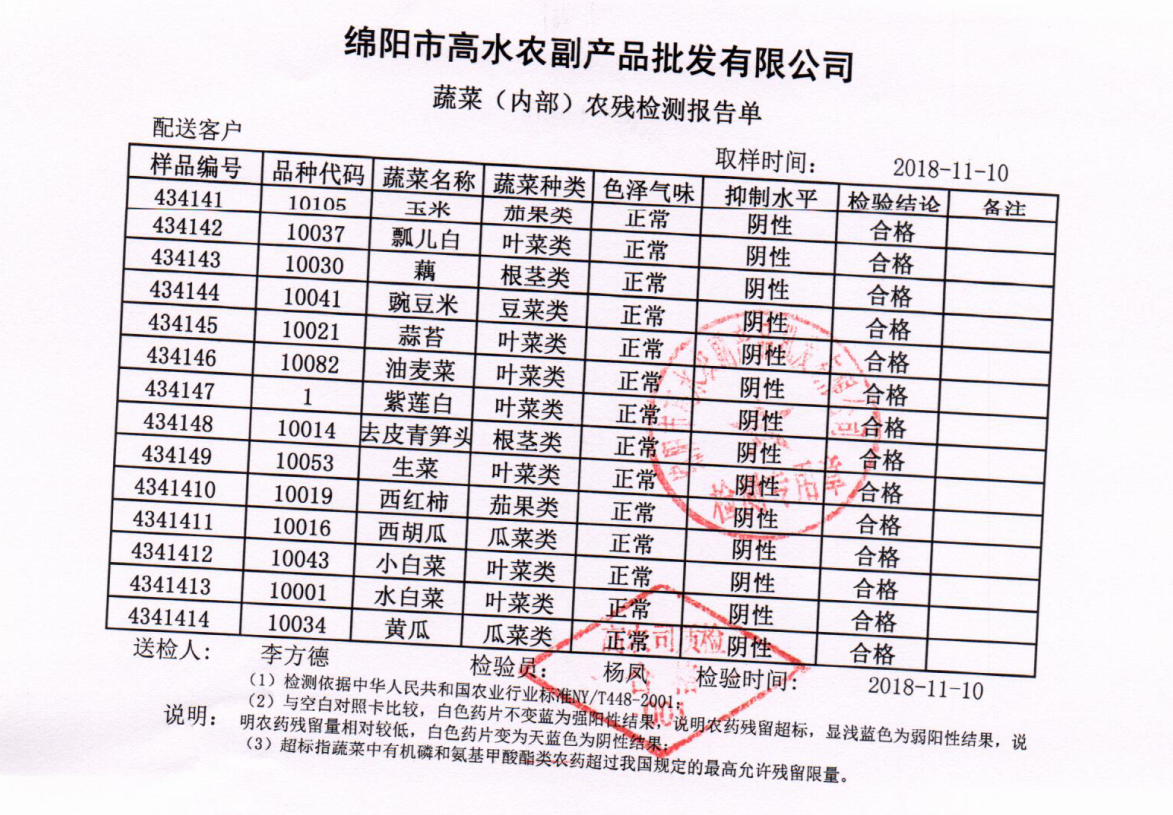 高农司农残检测报告单