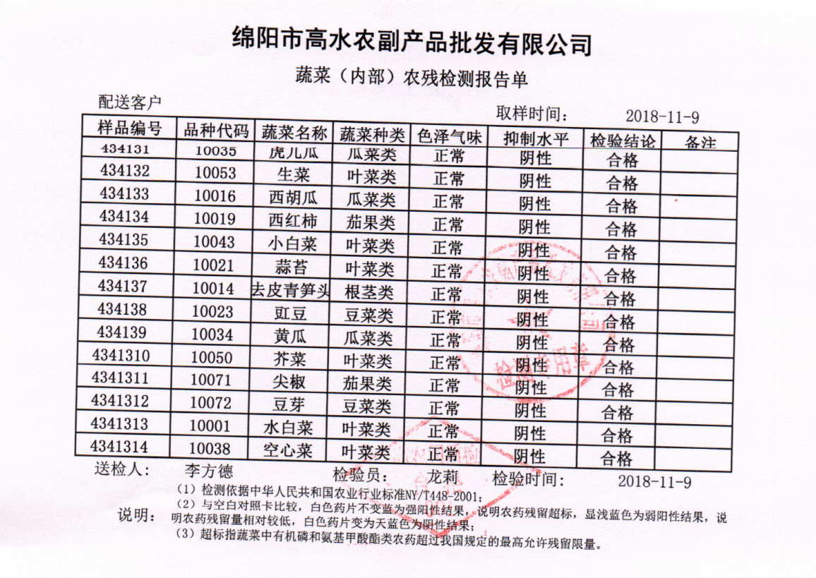 高农司农残检测报告单