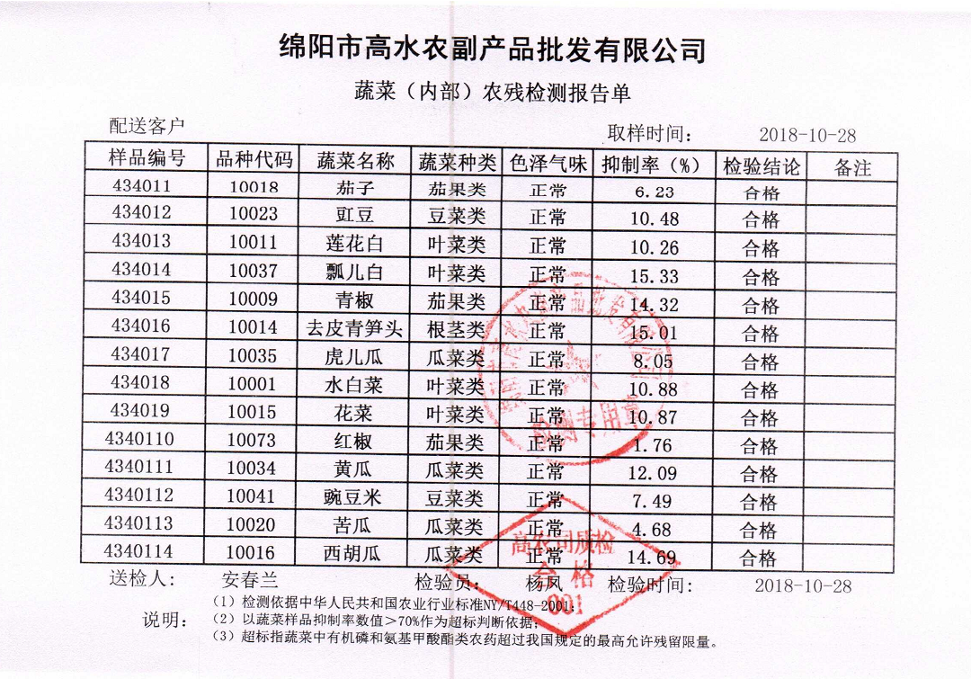 高农司农残检测报告单