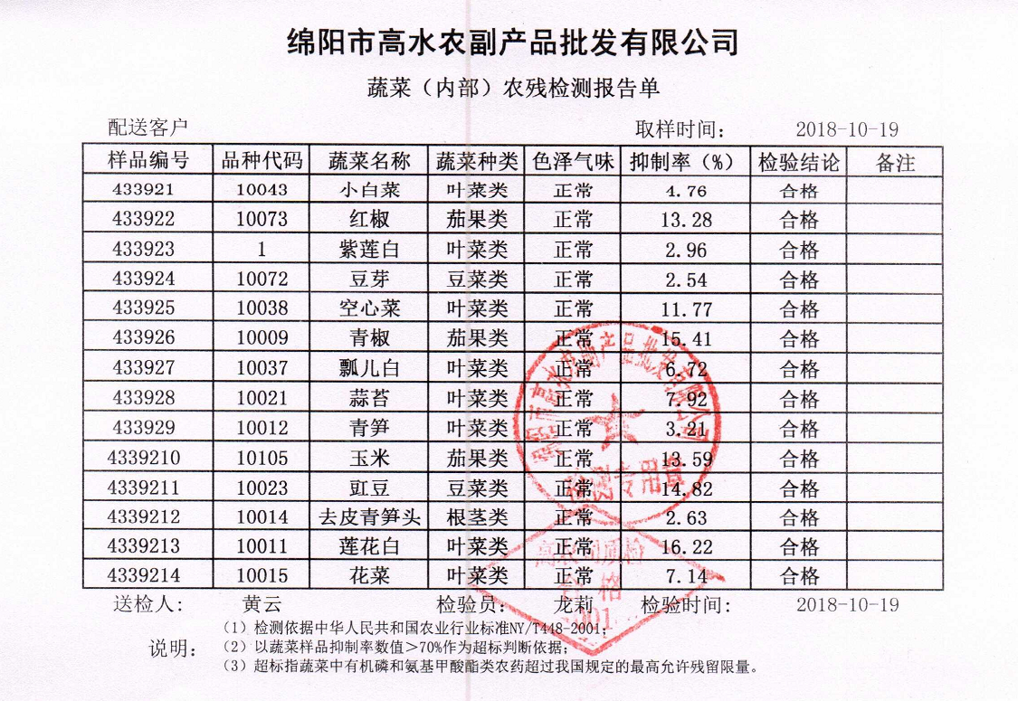 高农司农残检测报告单