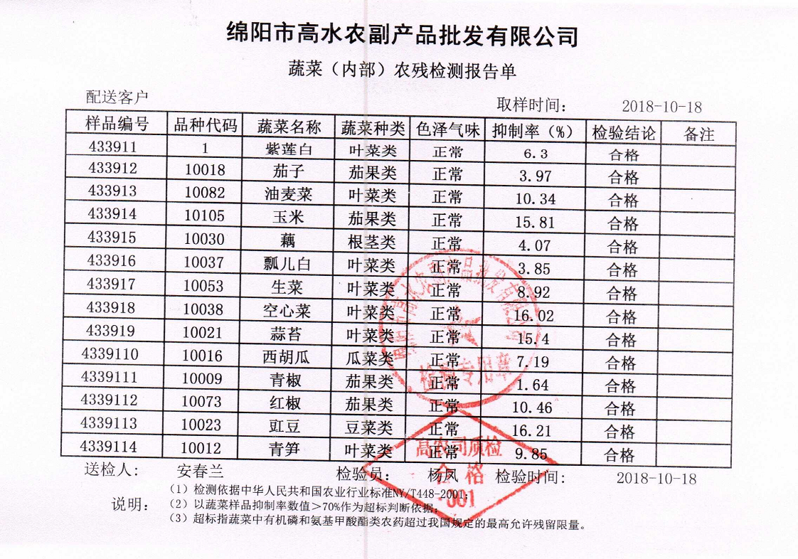 高农司农残检测报告单