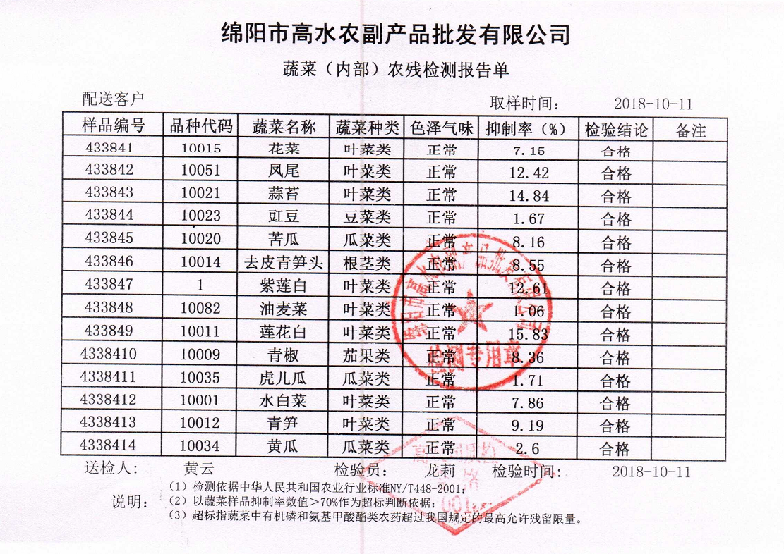 高农司农残检测报告单
