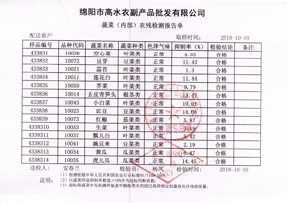 高农司农残检测报告单