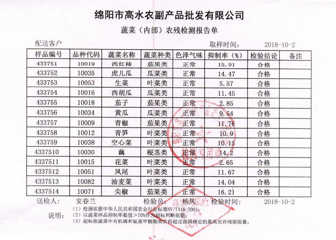 高农司农残检测报告单