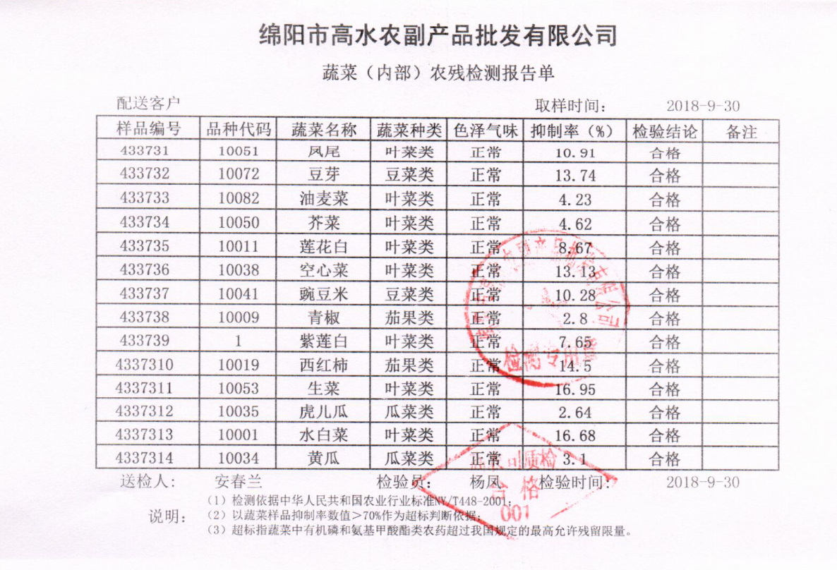 高农司农残检测报告单