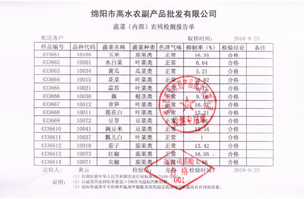 高农司农残检测报告单
