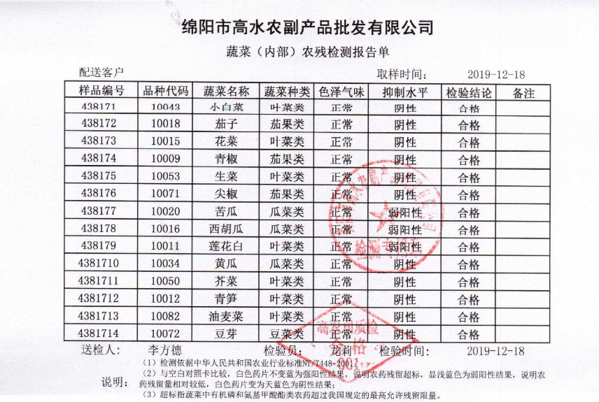 高农司农残检测报告单