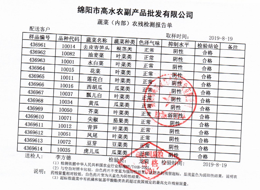高农司农残检测报告单