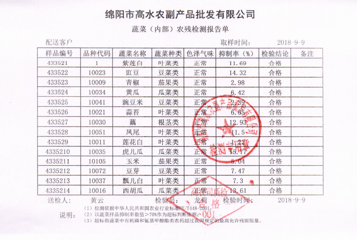高农司农残检测报告单