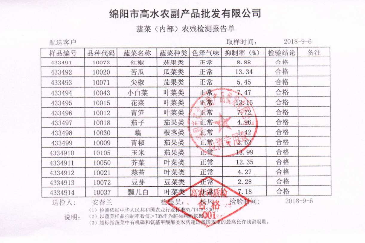 高农司农残检测报告单