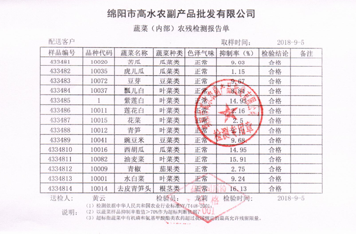 高农司农残检测报告单