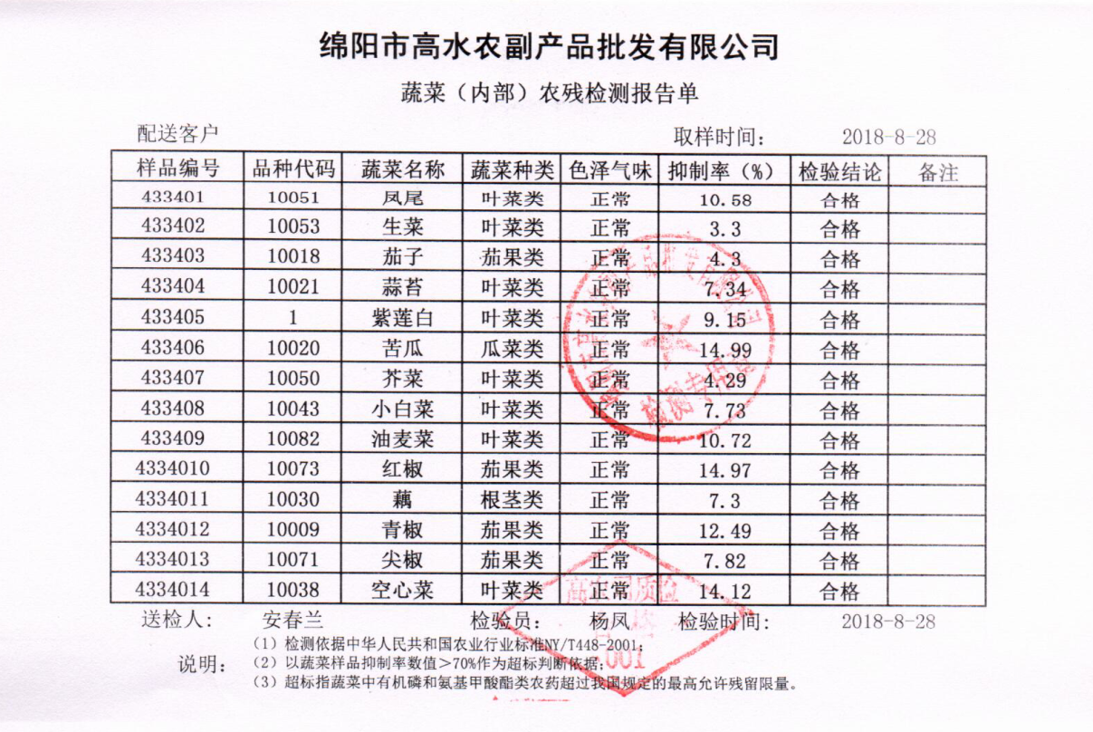高农司农残检测报告单