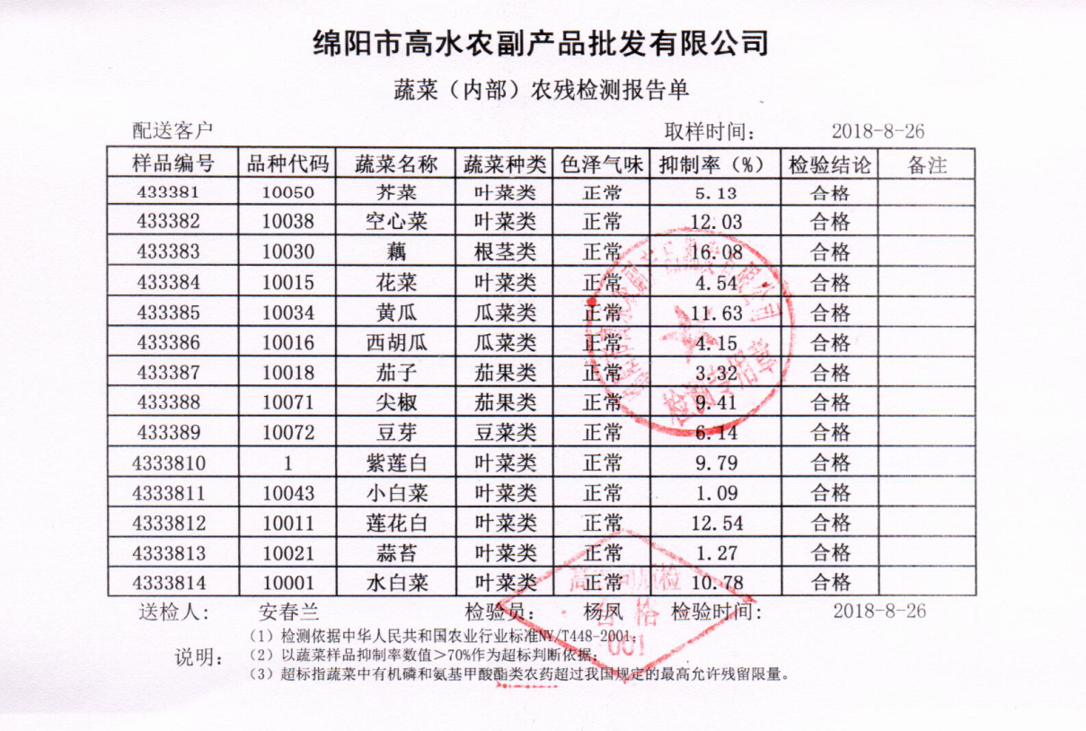 高农司农残检测报告单
