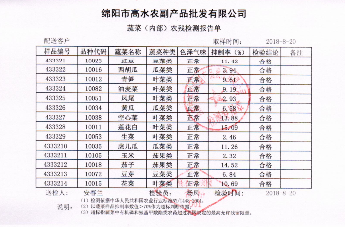 高农司农残检测报告单