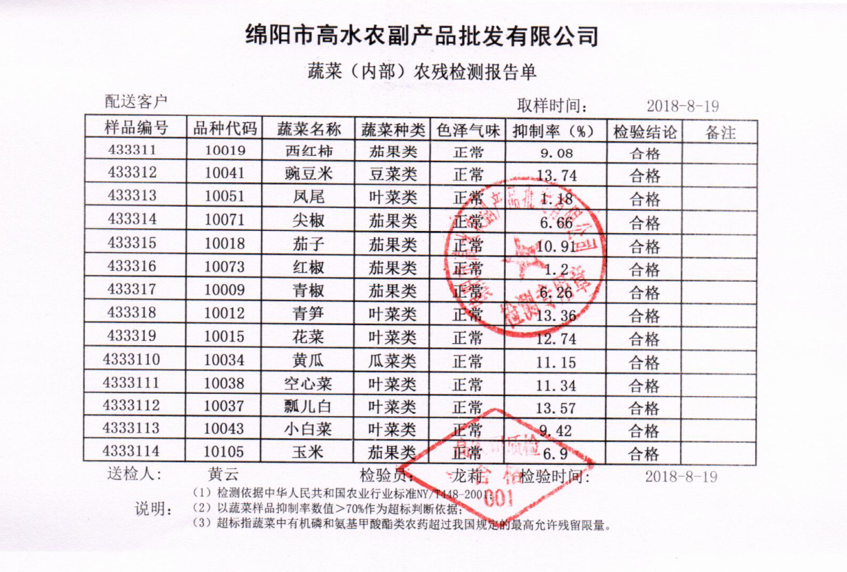 高农司农残检测报告单
