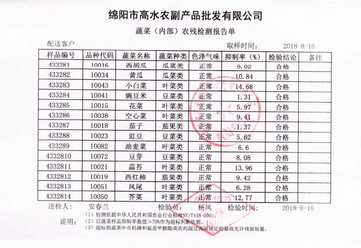 高农司农残检测报告单