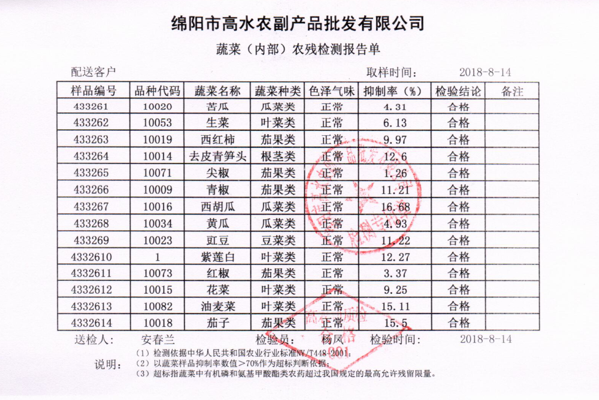 高农司农残检测报告单